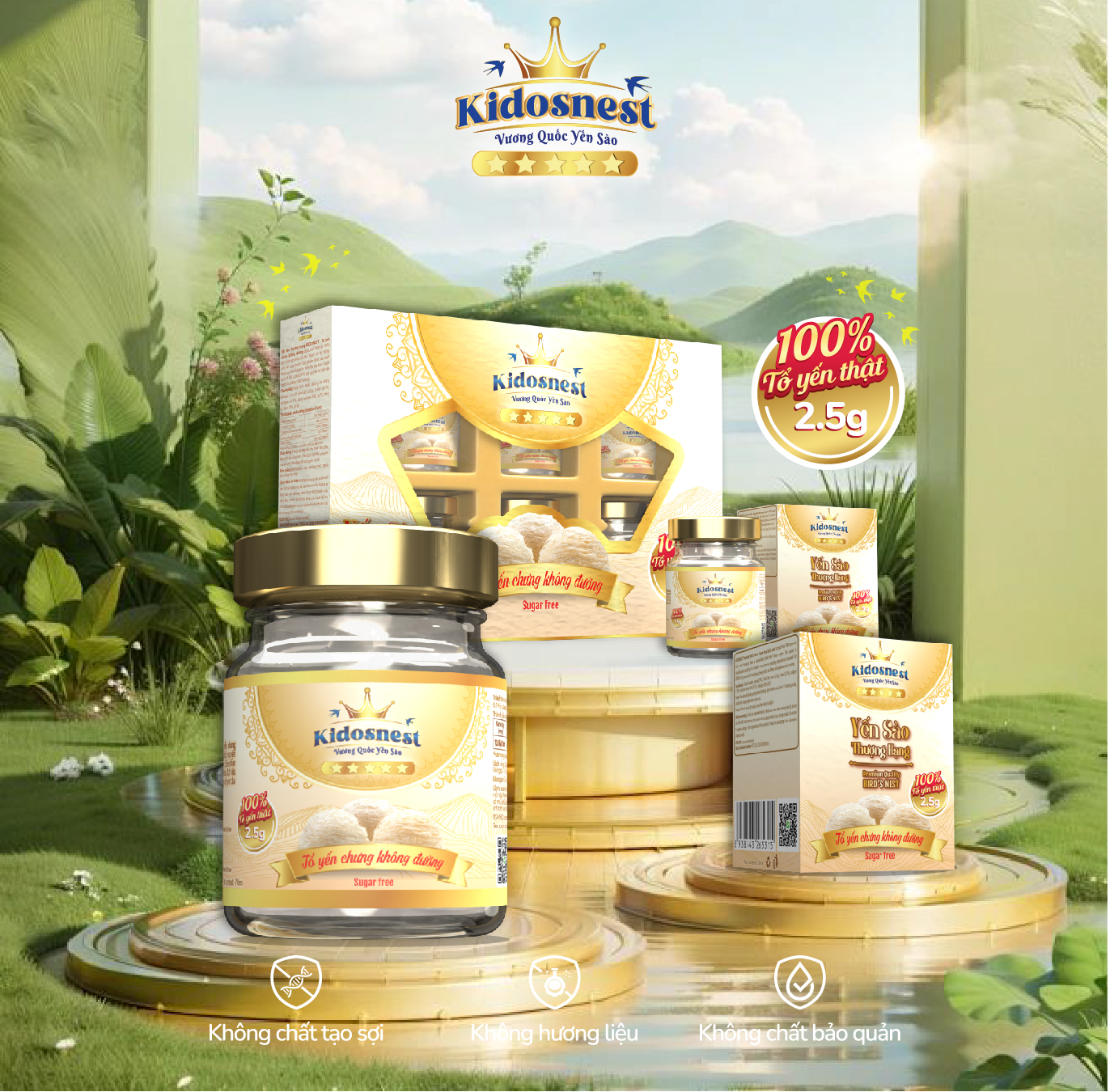 Chuyên sản xuất các sản phẩm yến sào cao cấp từ 100% tổ yến thật, không pha tạp, không chất bảo quản – được chế biến trên dây chuyền hiện đại đạt chuẩn ISO 22000:2018, từ nguồn nguyên liệu chất lượng tại hệ thống nhà yến nuôi theo quy chuẩn. Sợi yến nguyên chất, dai ngon, giàu dinh dưỡng – giữ trọn hương vị tự nhiên.